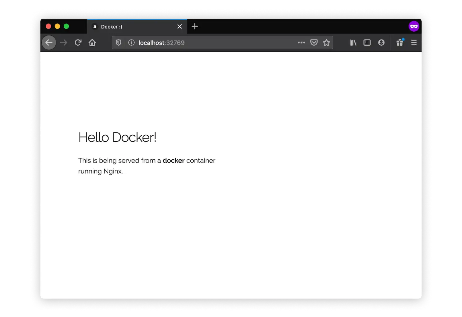 Команда, яку ми щойно запустили, використовувала порт 5000 для сервера всередині контейнера та розкрила це зовнішньо на порту 8888. Перейдіть за URL-адресою з портом 8888, де ваш застосунок має бути онлайн.