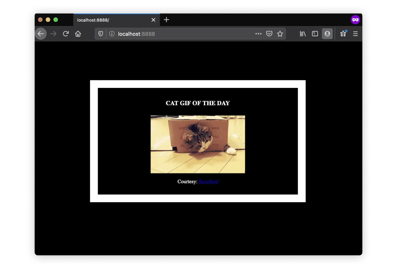 Відкрийте зазначену URL-адресу у браузері, щоб побачити застосунок у всій його красі. Надішліть посилання своїм друзям, щоб усі могли насолодитися гіфками з котиками.