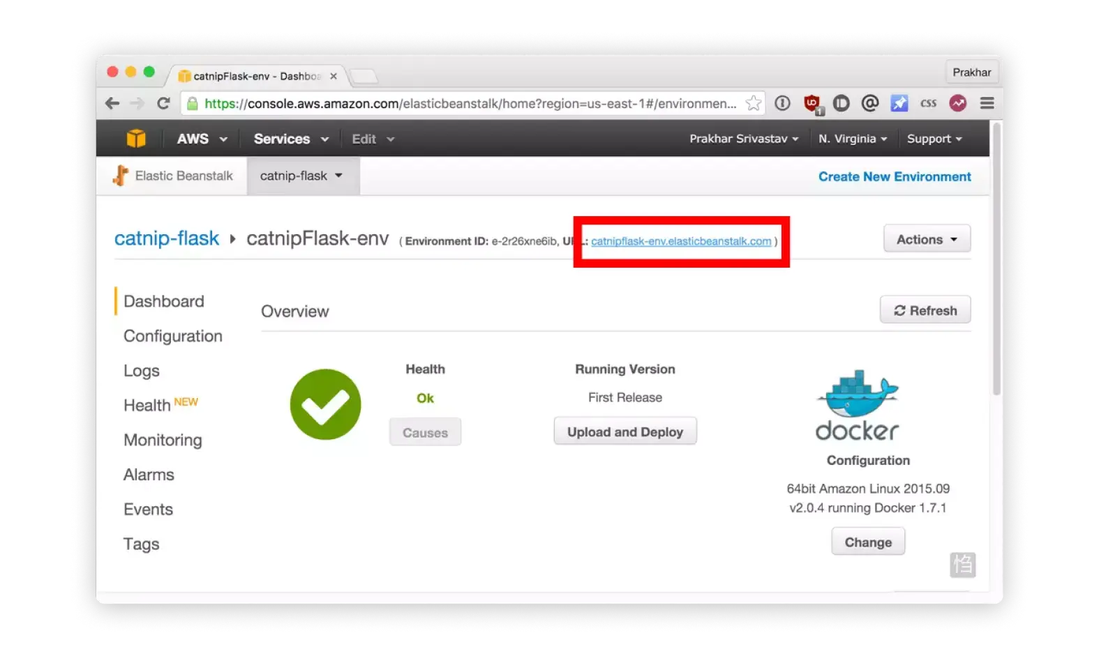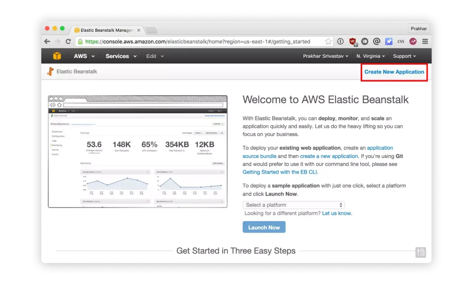AWS Elastic Beanstalk (EB) — це PaaS (Platform as a Service), який пропонує AWS. Якщо ви використовували Heroku, Google App Engine тощо, то почуватиметесь, як удома. У ролі розробника ви просто вказуєте EB, як запустити ваш застосунок, а він подбає про решту — включно з масштабуванням, моніторингом і навіть оновленням. У квітні 2014 року EB додав підтримку запуску одноконтейнерних Docker-застосунків, що ми й задіюємо для розгортання свого. Хоча EB має дуже інтуїтивно зрозумілий інтерфейс командного рядка, для простоти ми використовуватимемо вебінтерфейс для запуску застосунку.