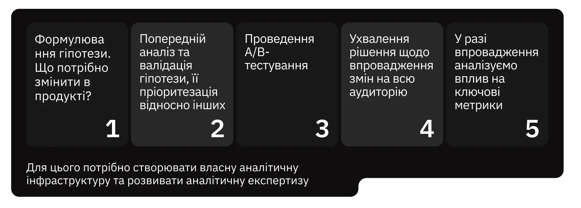 Працювати з драйверами зростання продукту неможливо, якщо ми не маємо даних, але й цього мало. Потрібно мати аналітичну експертизу в продукті, а також відповідні процеси та майндсет, розвивати культуру ухвалення рішень на основі даних».