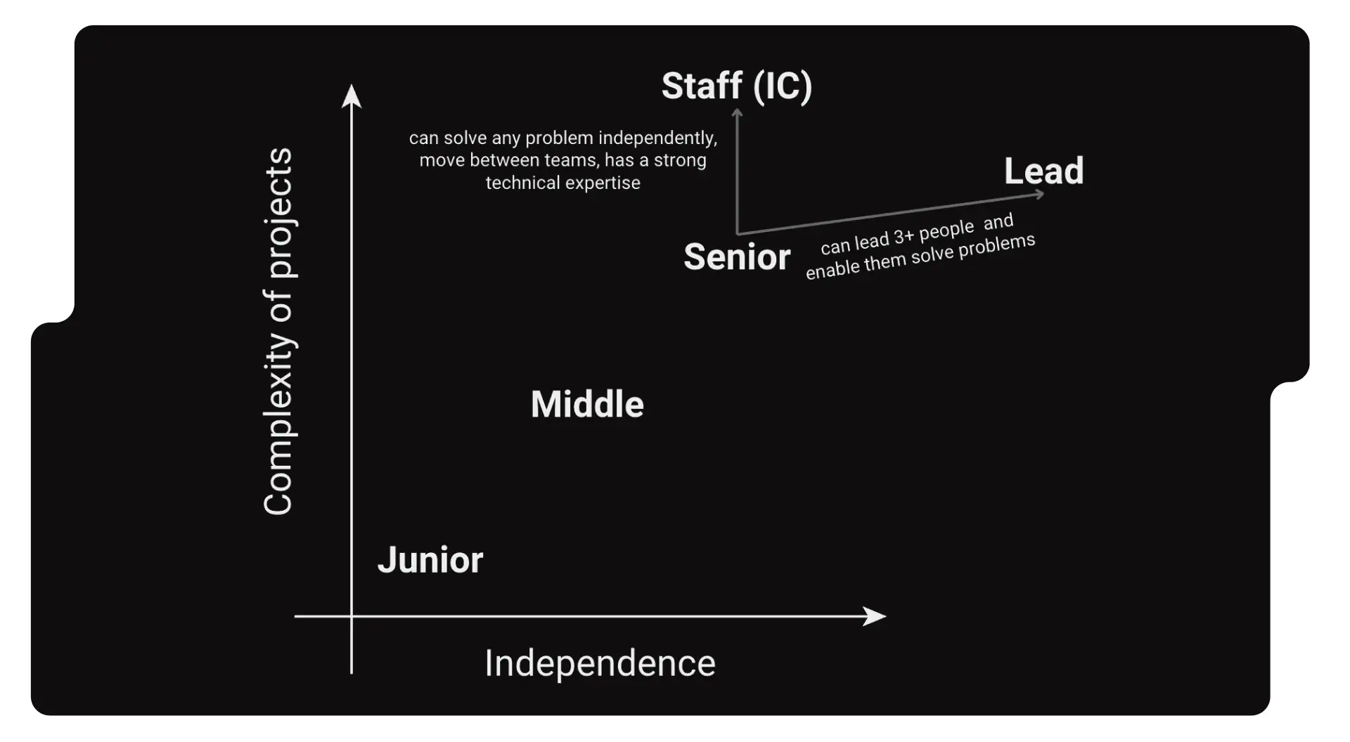 Коли аналітик виконує проєкти будь-якої складності, то він може перейти із Senior Analyst в Staff (IC) або, якщо у бізнесу є така потреба, брати на себе менеджерство та менторинг кількох аналітиків для Lead.