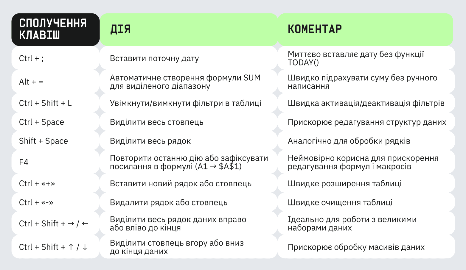 Тут, звісно, все дуже суб’єктивно, адже різні користувачі мають дуже різні завдання, тож я поділюся своєю улюбленою добіркою шорткатів — можливо, комусь вони стануть у пригоді.