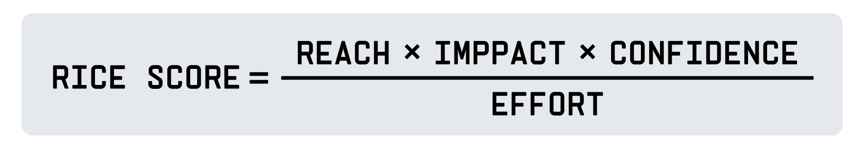 RICE дає змогу звести оцінку завдання до числового значення RICE score, яке допомагає порівняти навіть дуже різні типи ініціатив між собою: фічу, технічний борг, UX-покращення чи запуск кампанії. Формула проста, але продумана: