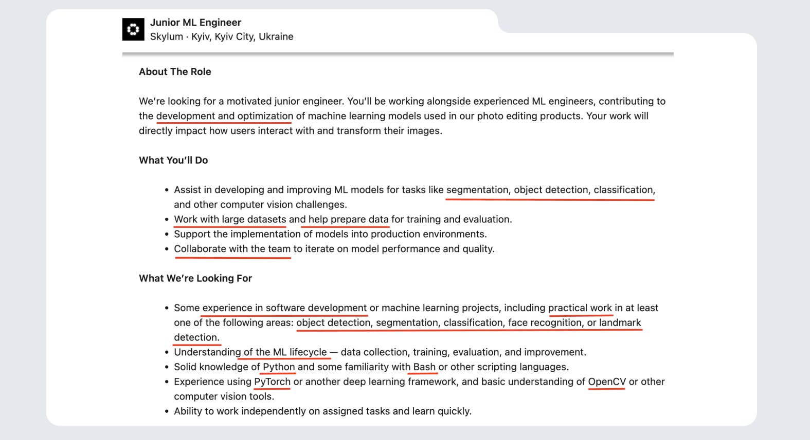 В описах вакансій є купа ключових слів, які варто використовувати в резюме. На це є 2 основні причини: