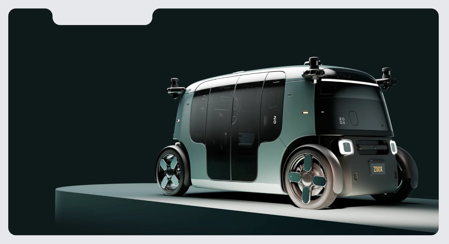 Zoox — унікальний конкурент. Вони не переобладнують звичайні машини, а створюють робомобіль з нуля: симетричний, без переду й заду, з двобічним керуванням, великим салоном. Їхній підхід характерно футуристичний, адже машини навіть не мають педалей чи керма.