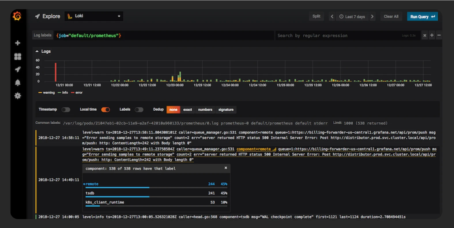 Loki працює на основі labels — це ключі, за якими агрегуються та індексуються логи. Наприклад: