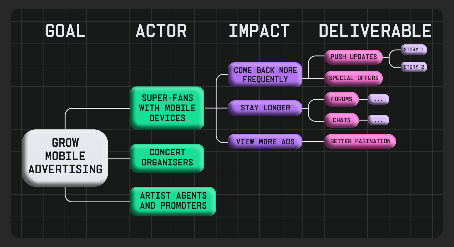 Уявімо, що Spotify хоче збільшити кількість платних підписок. Impact Mapping допомагає розкласти бажання на складники: