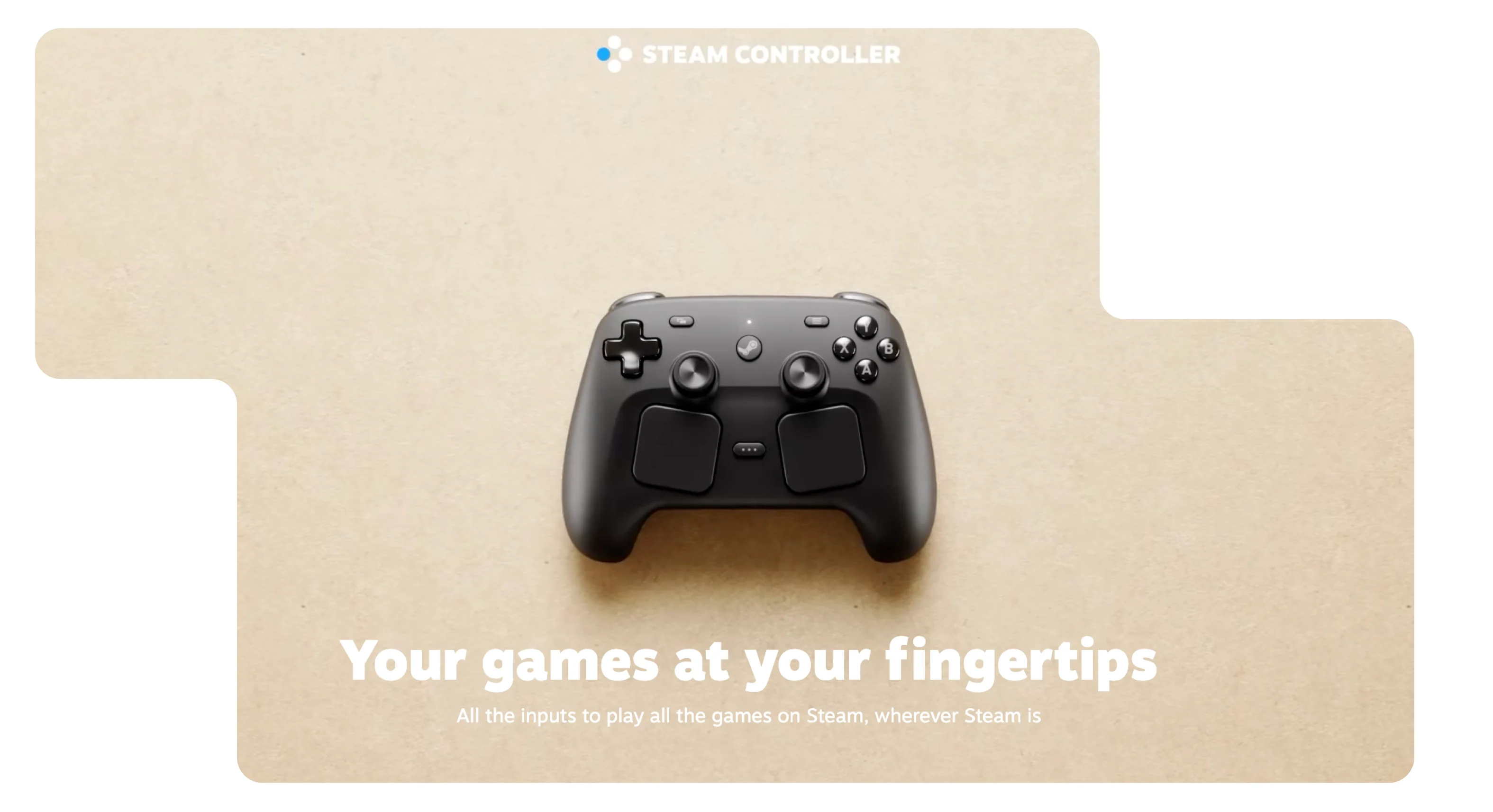 Разом із консоллю представили оновлений Steam Controller. Цього разу він має нові тактильні панелі, розширені можливості налаштування та підтримку Steam Input.