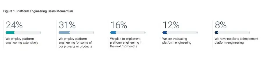 Отже, ця практика переходить зі стадії нішевого тренду в масове впровадження. Дані від Google Cloud показують, що 55% компаній вже впровадили платформну інженерію, а 90% з них планують розширювати ці ініціативи найближчими роками.