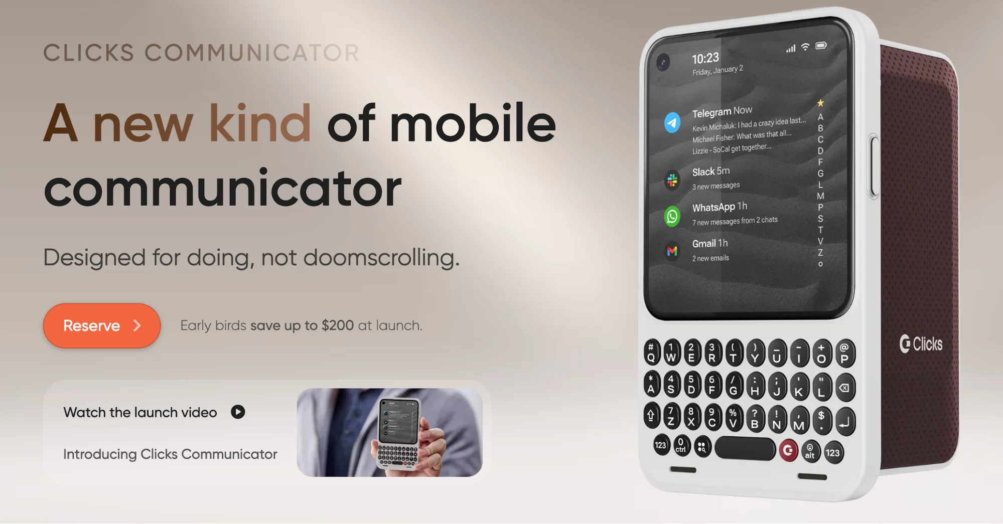 Це своєрідний спадкоємець BlackBerry. Він працюватиме на базі Android 16 з Niagara Launcher і матиме чистий список застосунків, з фокусом на продуктивність, а не думскролінг. Смартфон отримав сенсорну фізичну клавіатуру, якою можна не лише друкувати, але й скролити інтерфейс.