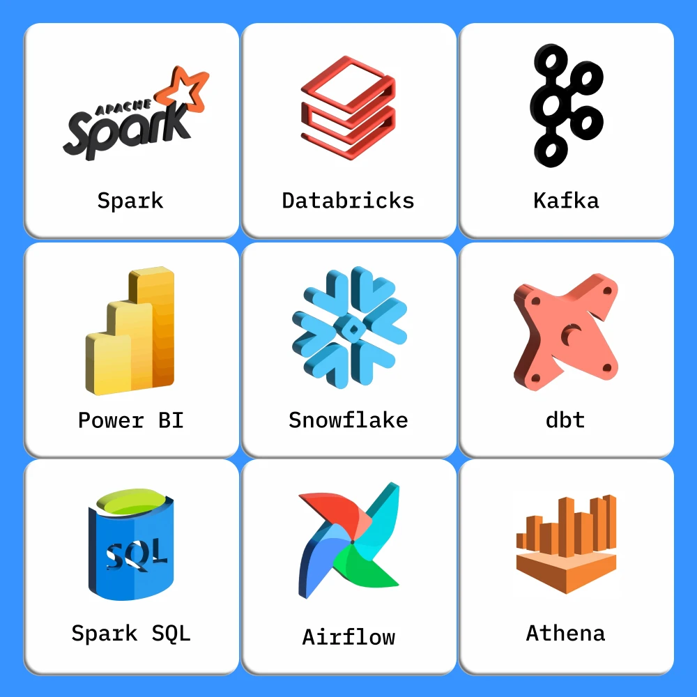 Освоите Apache Spark, Databricks, Kafka, Snowflake, dbt, Airflow, AWS Athena, Power BI, чтобы проектировать стабильные системы обработки данных — от сбора до визуализации.