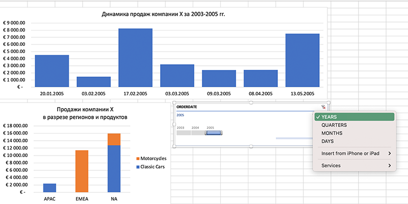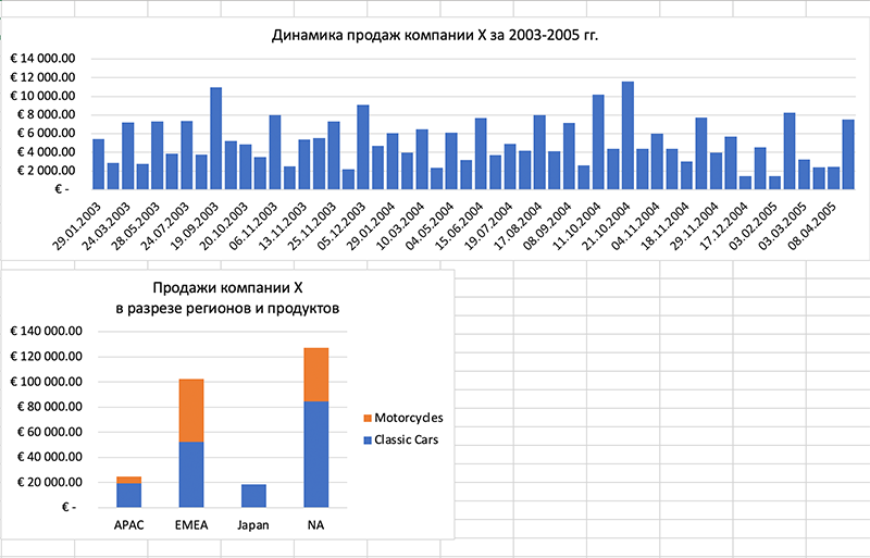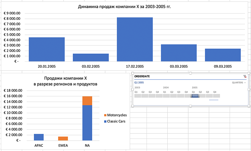 Наприклад, зрозуміти, як змінювалася загальна динаміка продажів і динаміка продажів окремо за кожним регіоном та продуктом за обраний період.