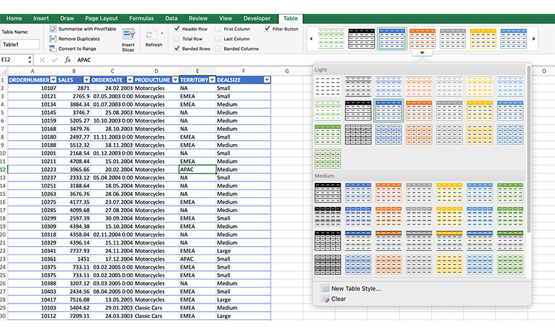 На вкладці «Таблиця» (Table) обираємо оформлення для створеної таблиці: