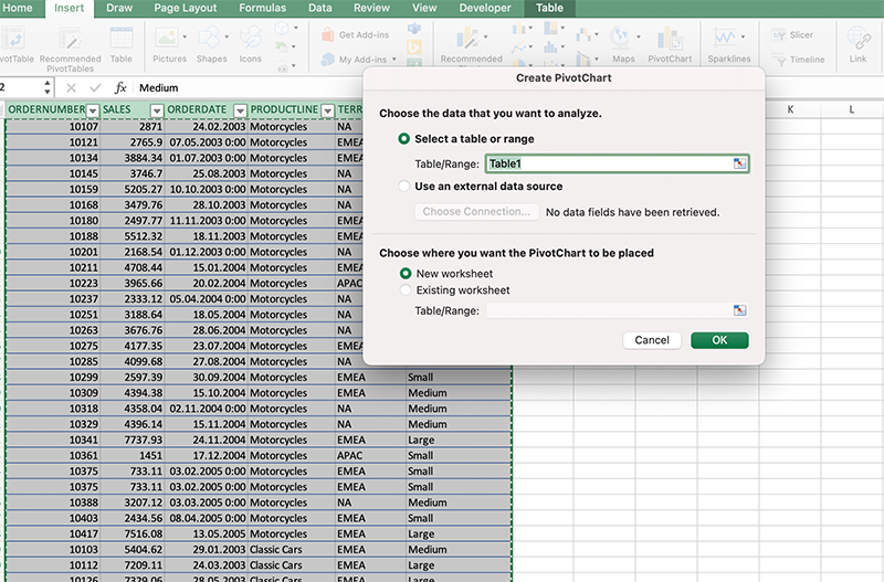 2. Створюємо зведену таблицю: виділивши таблицю, на вкладці «Вставка» (Insert) -> обираємо «Зведена таблиця» (Pivot table).