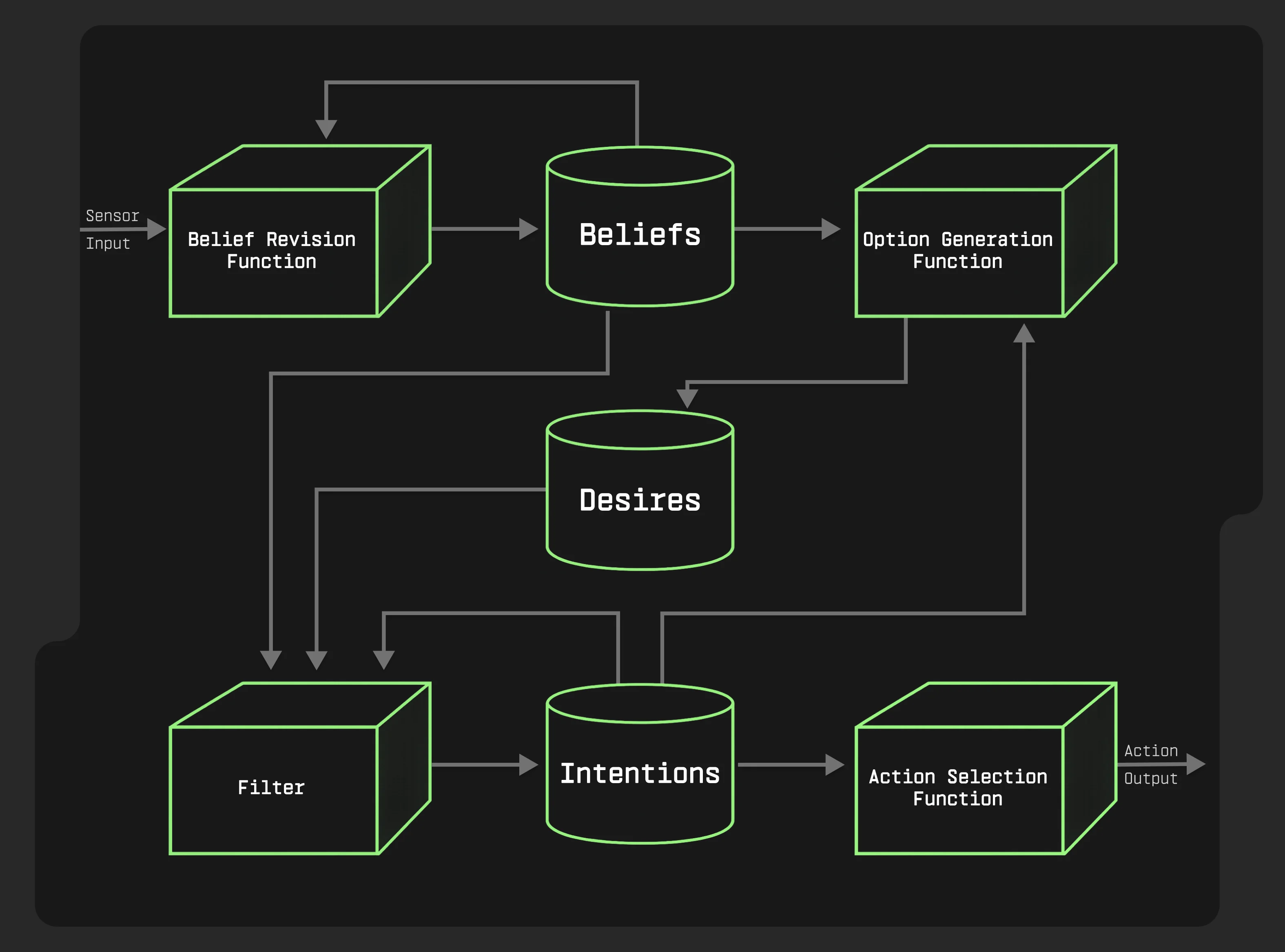 Агент постійно оновлює beliefs (нові дані про поведінку), переоцінює desires (чи актуальна мета?) і коригує intentions (план працює чи треба змінити?).